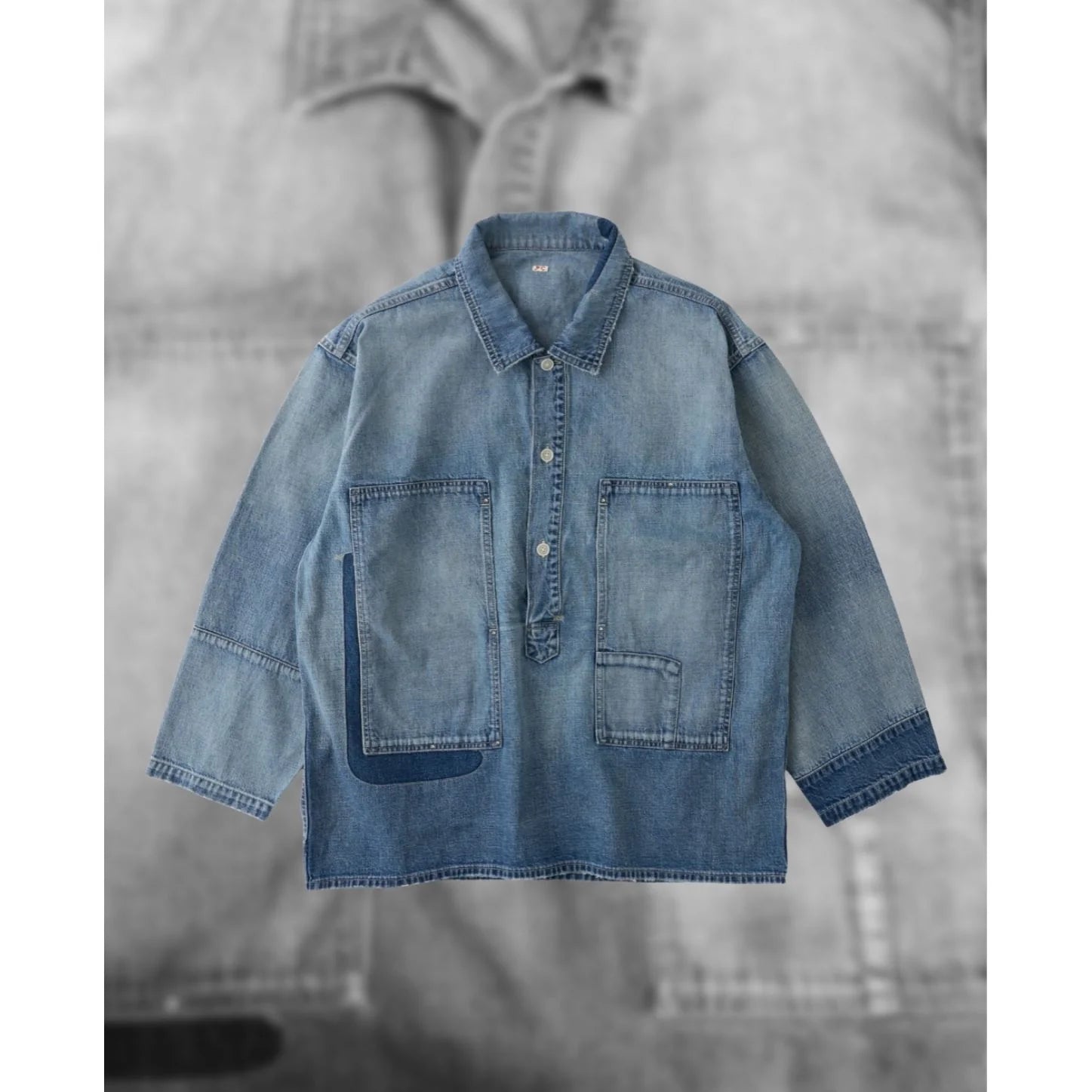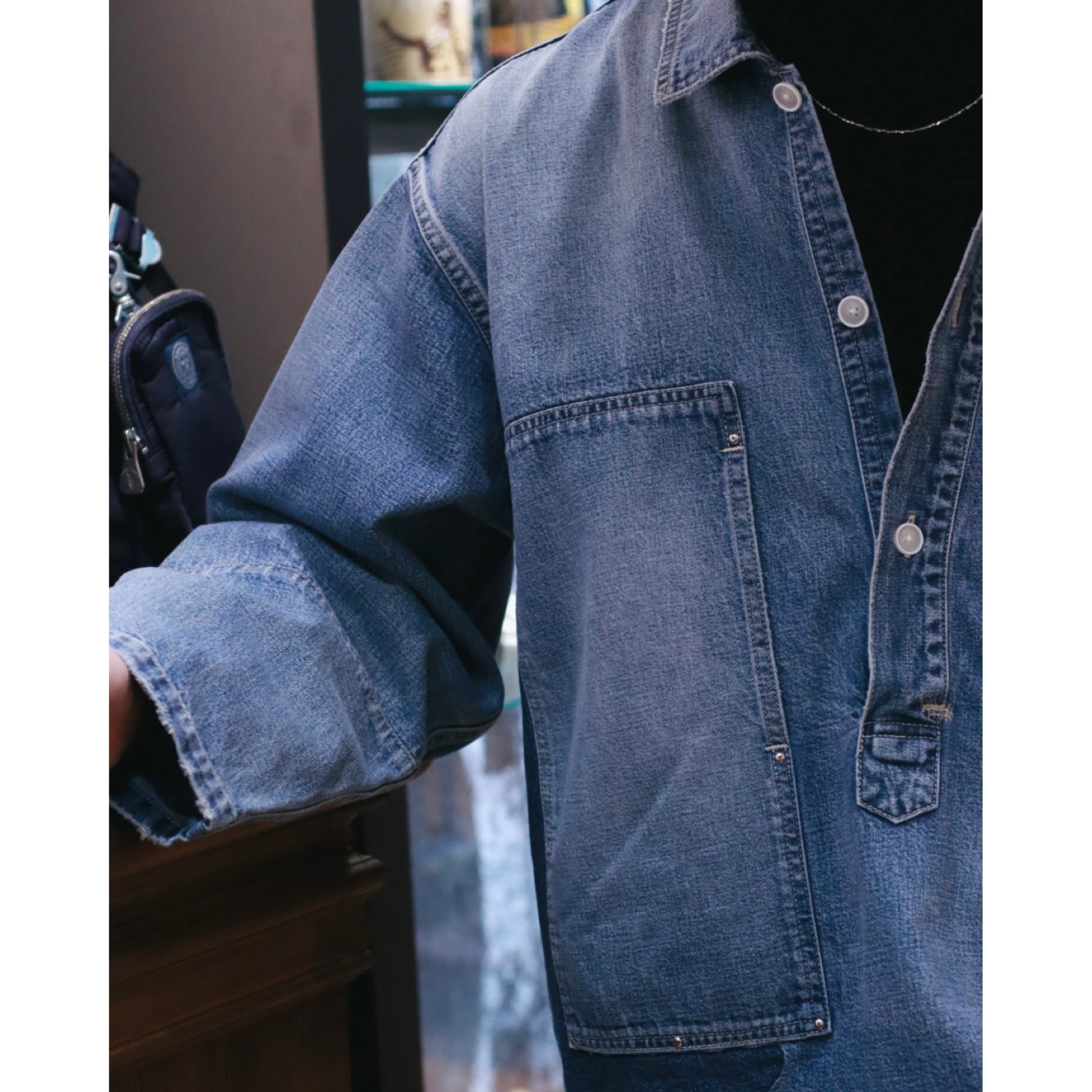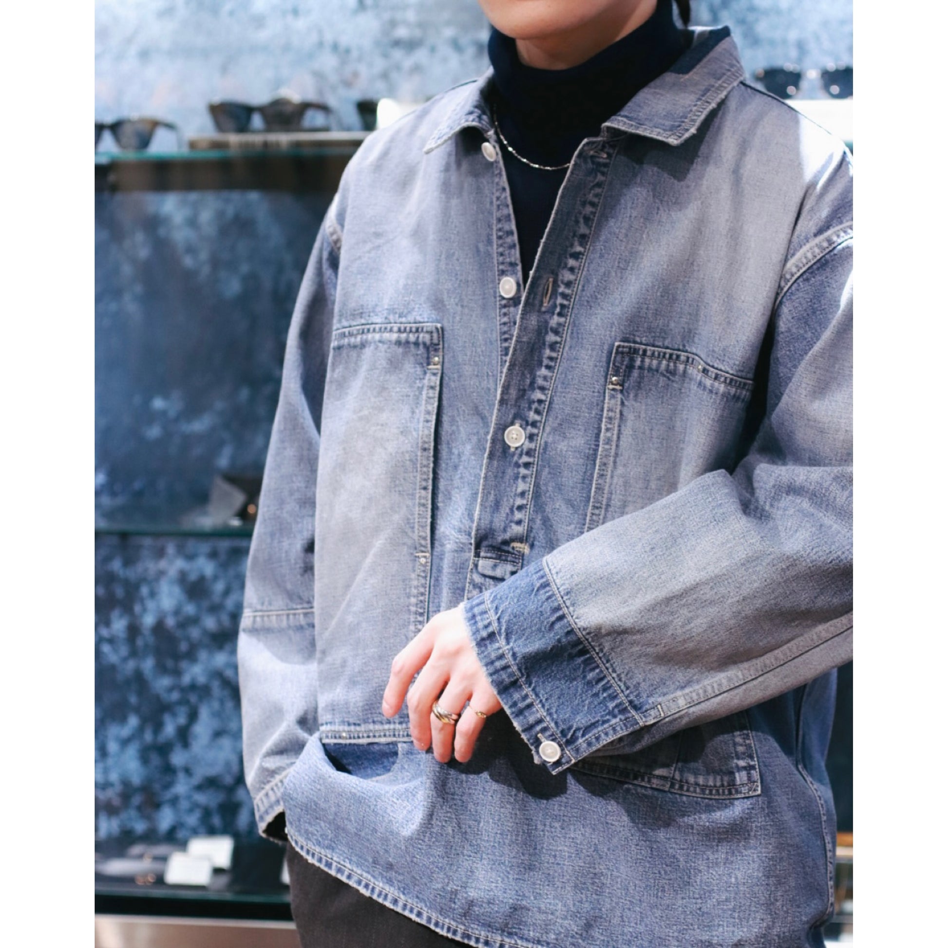 ヴィンテージのワークデニムのような経年変化を、職人が丁寧に加工した特別な一着です。程よいムラ感と、色落ちしても美しく残る約11オンスの軽やかなデニム生地を使用。新年から春先まで快適に着用いただけます。