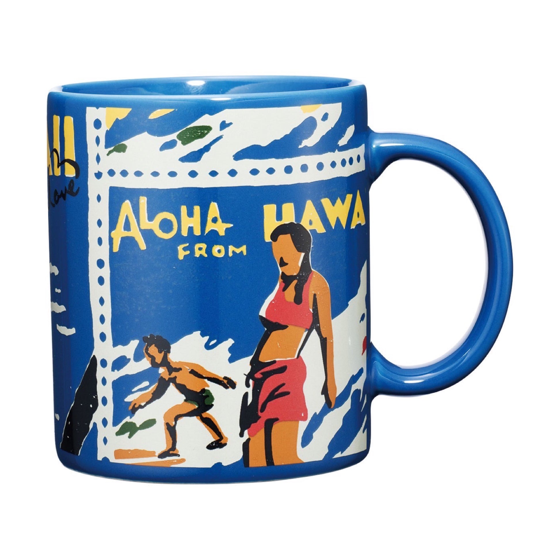 アンティークの切手を元に描かれた、MIMOE氏によるHAWAIIAN OUTDOOR シリーズ。BLACK、BLUE、BEIGE、GREENの4色展開。