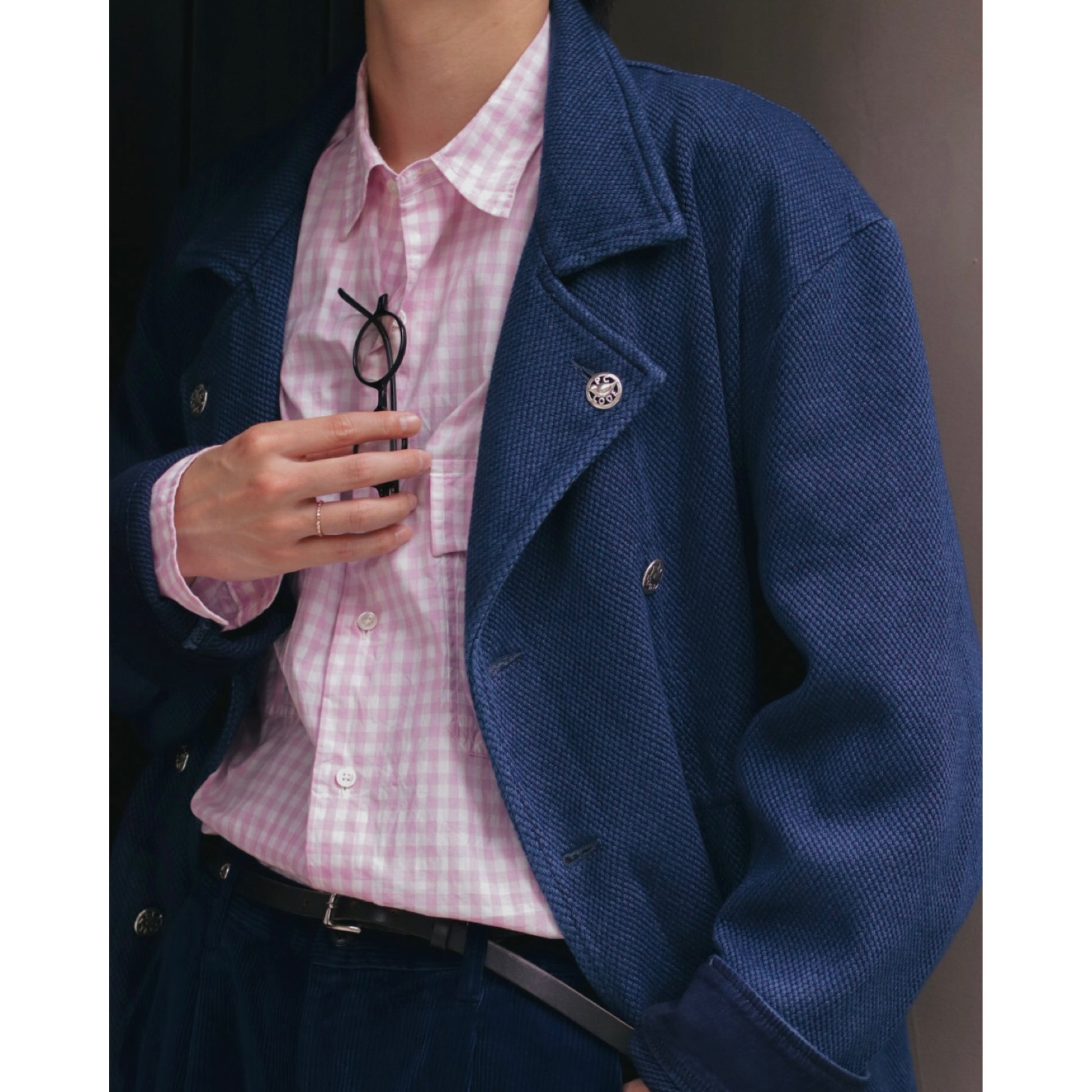 春秋冬と長いシーズン楽しめるPC KENDO。シーアイランドコットンで織り上げた剣道生地は、重厚感のある見た目としなやかな肌触りのギャップがたまりません。シルバー925のオリジナルボタンが映えるDOUBLE CAR JACKET。ジャスト目にバシッと決めるのも、大きめにコートっぽく着るのも素敵です。